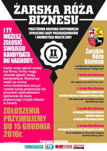 To już II edycja konkursu pn. ,,Żarska Róża Biznesu”. Każdy z nas może za pośrednictwem strony internetowej www.rozabiznesu.zary.pl, zgłosić swojego kandydata (FIRMĘ) do prestiżowej nagrody gospodarczej, Społecznej Rady Przedsiębiorców oraz Burmistrza Miasta Żary.
