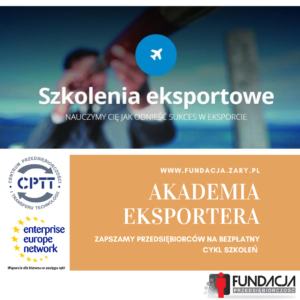 Fundacja ,,Przedsiębiorczość” we współpracy z Centrum Przedsiębiorczości i Transferu Technologii Uniwersytetu Zielonogórskiego, zapraszają na Akademię Eksportera – cykl szkoleń dla przedsiębiorców z województwa lubuskiego.