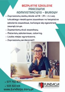 Fundacja „Przedsiębiorczość” zaprasza osoby młode od 18 – 29 r. ż z woj. lubuskiego nieaktywne zawodowo na bezpłatne szkolenia zawodowe, kończące się egzaminem zewnętrznym.