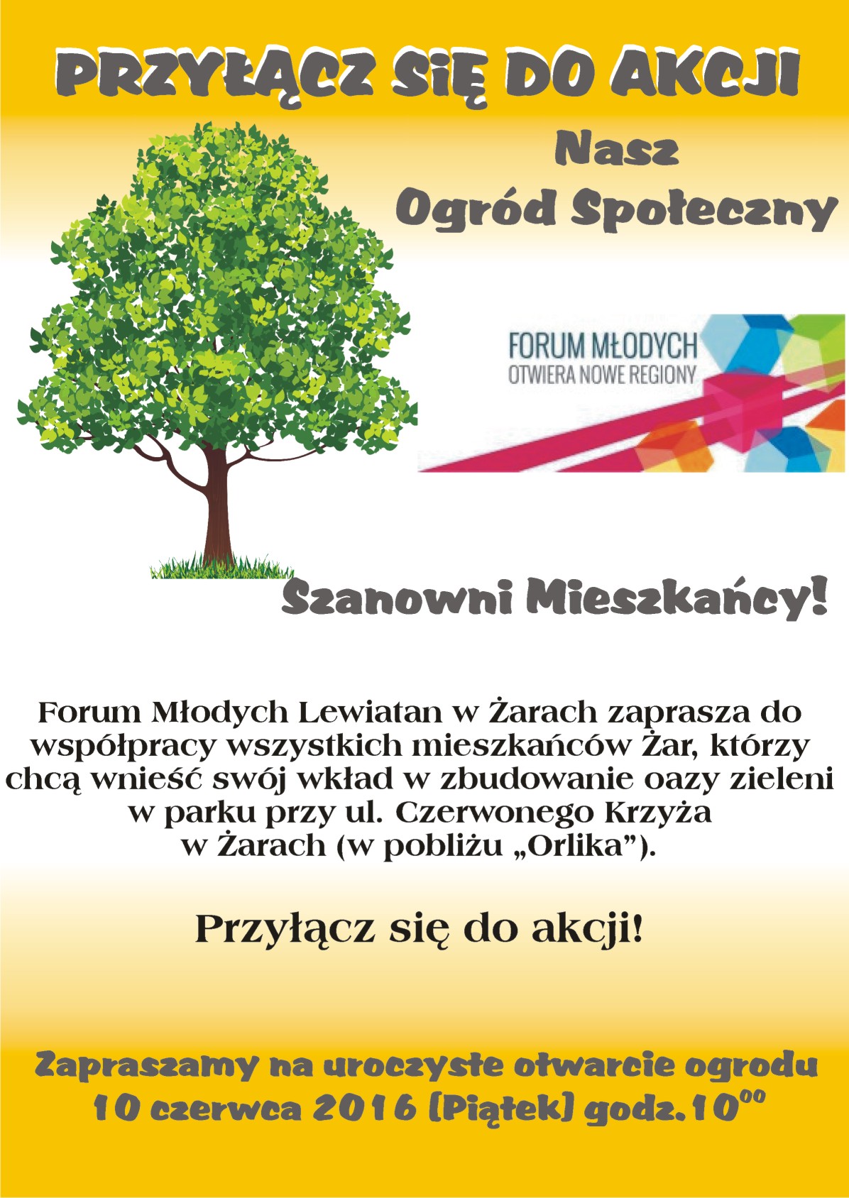 Forum Młodych Lewiatan, serdecznie zaprasza mieszkańców Żar na inaugurację prac w ,,Ogrodzie społecznym” 10.06.2016 r. o godz. 10.00 w Parku przy ul. Czerwonego Krzyża. ,,Nasz Ogród Społeczny’’ to odpowiedź na…