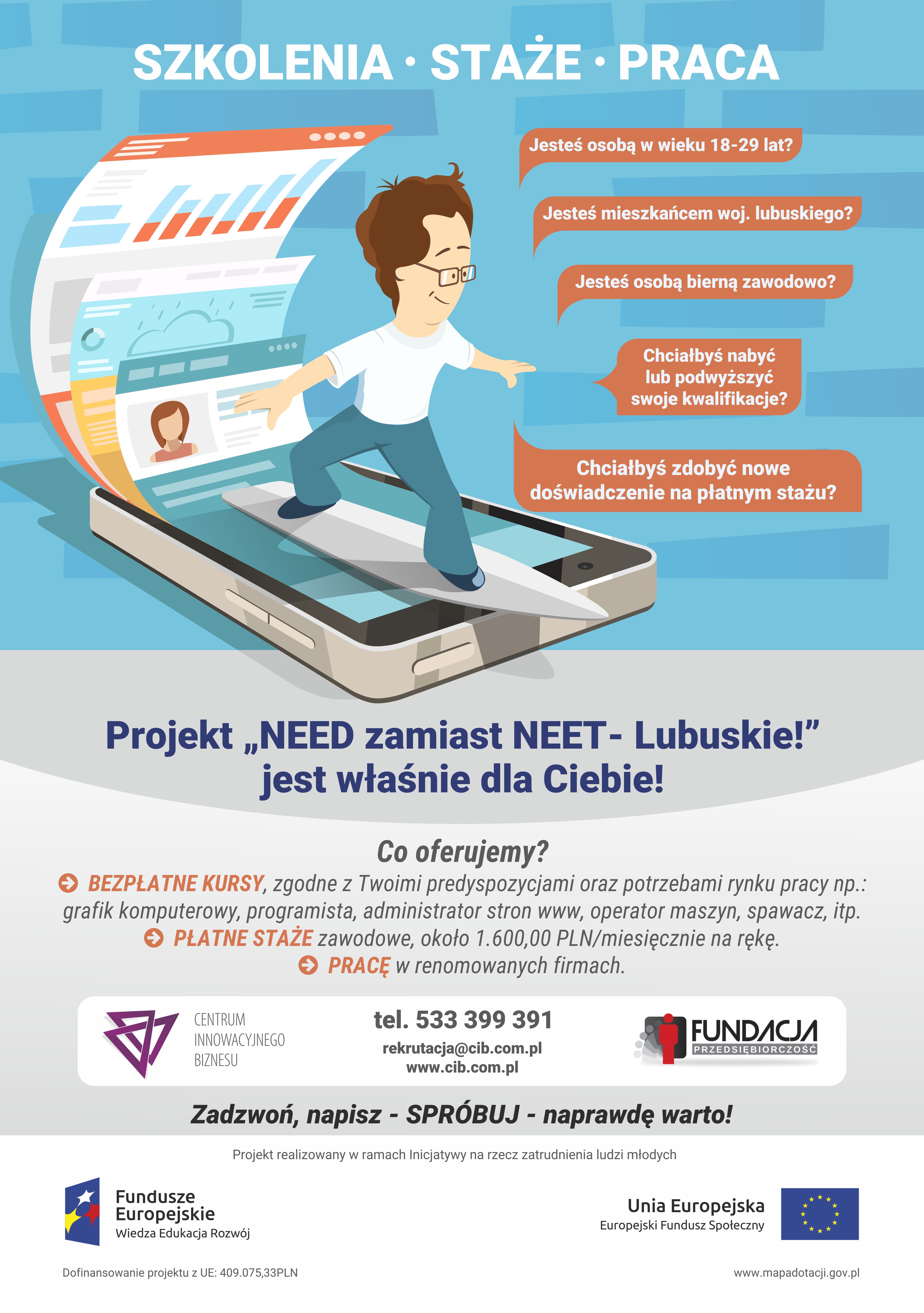 Bezpłatne szkolenia zawodowe i płatne staże dla osób od 18 do 29 roku