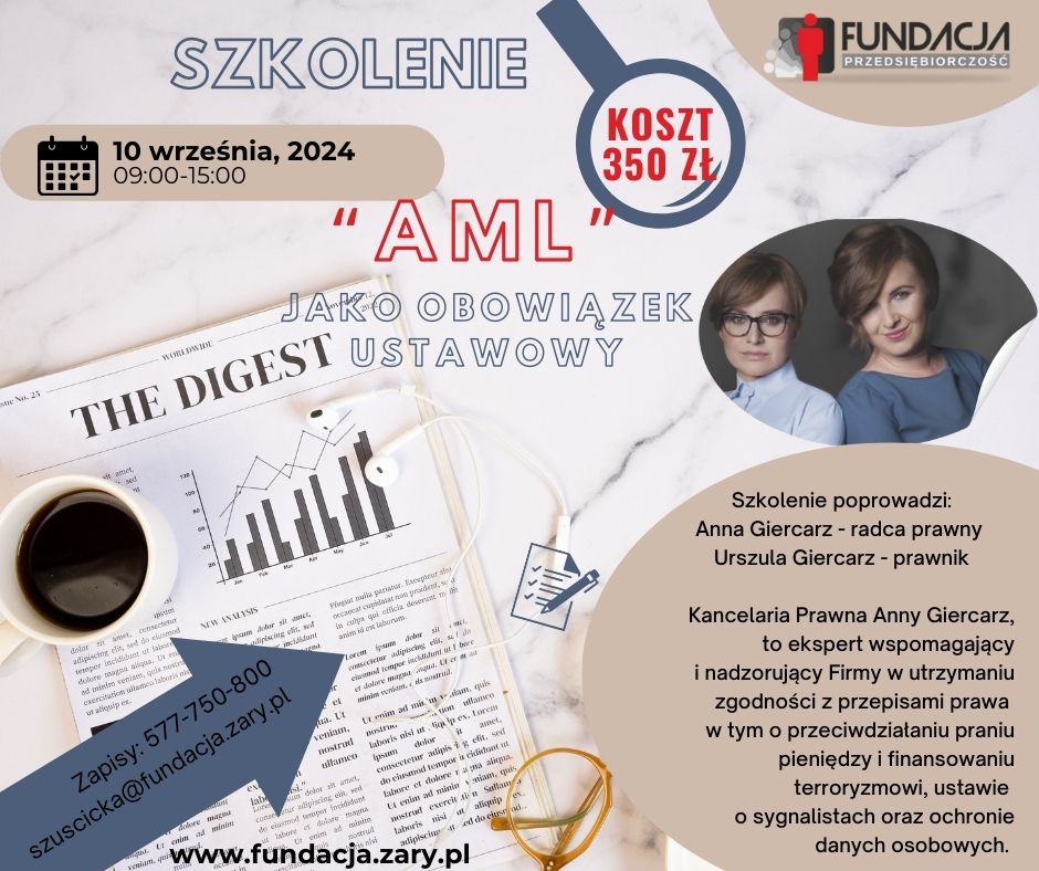 Szkolenie „AML” jako obowiązek ustawowy / Ustawa o sygnalistach- wchodzi w życie 25 września 2024r.