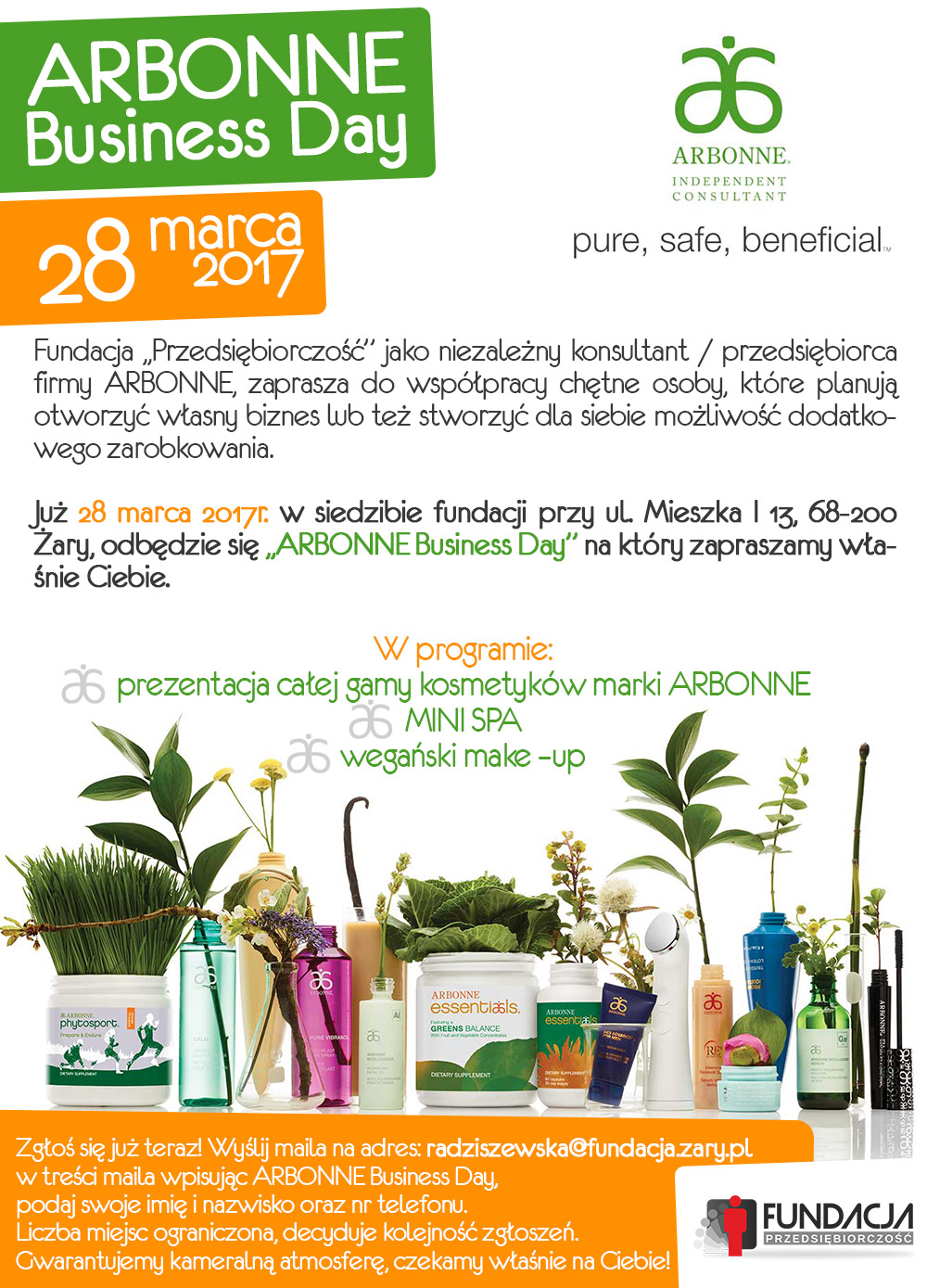 Fundacja ,,Przedsiębiorczość” jako niezależny konsultant / przedsiębiorca firmy ARBONNE, zaprasza do współpracy chętne osoby, które planują otworzyć własny biznes lub też stworzyć dla siebie możliwość dodatkowego zarobkowania. Już 28 marca…